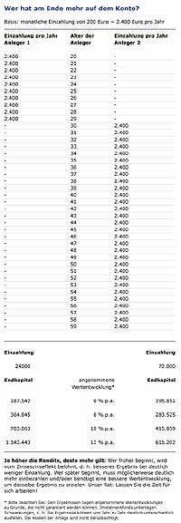 für Jahr 2400 Euro ein, allerdings 30 Jahre lang, also 20 Jahre länger als Anleger 1.